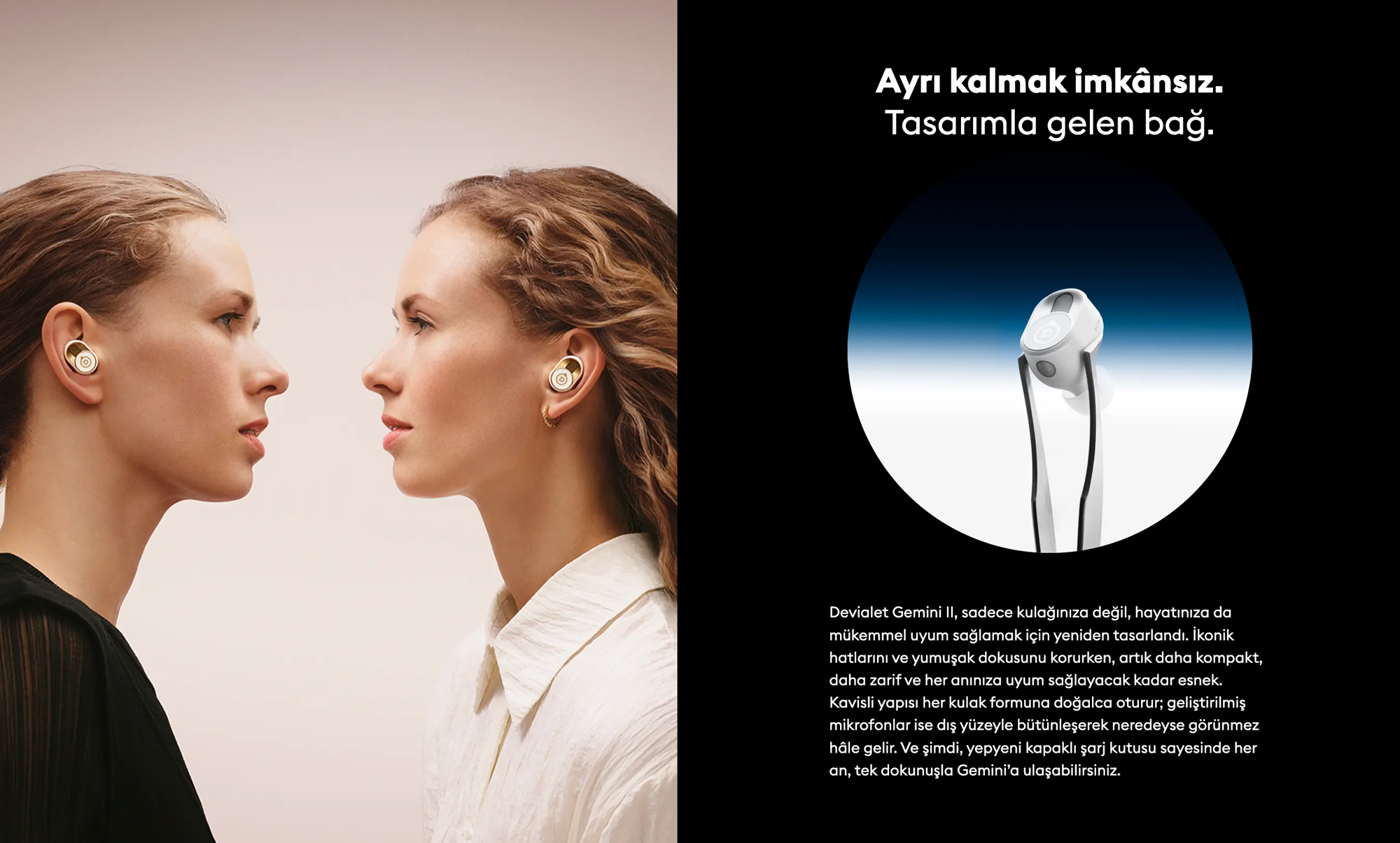 Adaptif gürültü engelleme, geliştirilmiş ergonomi ve güçlendirilmiş bağlantı teknolojisiyle Devialet Gemini II, saf sesi her an yanınızda taşımanız için yeniden tasarlandı.