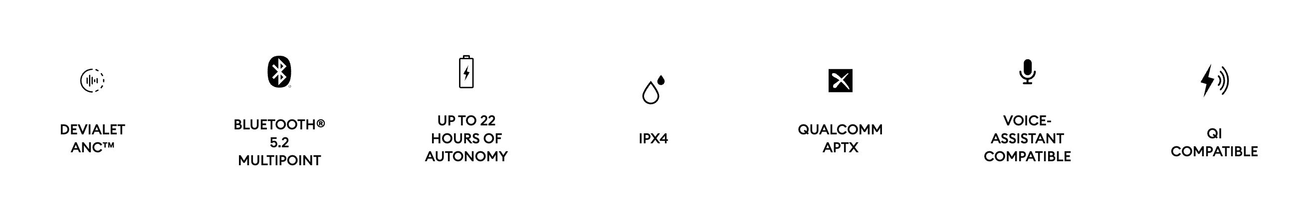 Özel üretim 10 mm titanyum kaplamalı Devialet sürücü ve Qualcomm® aptX™ codec ile daha da derin bir akustik dünyaya adım atın. Yeni Active Wind Reduction (AWR) teknolojisi sayesinde kulaklıklar, rüzgâr sesini otomatik olarak aktif şekilde azaltır.