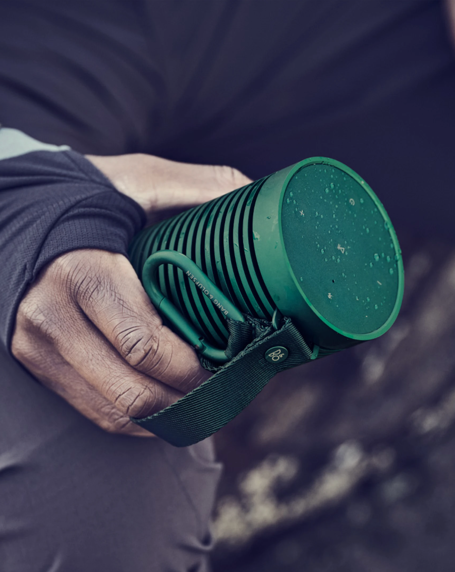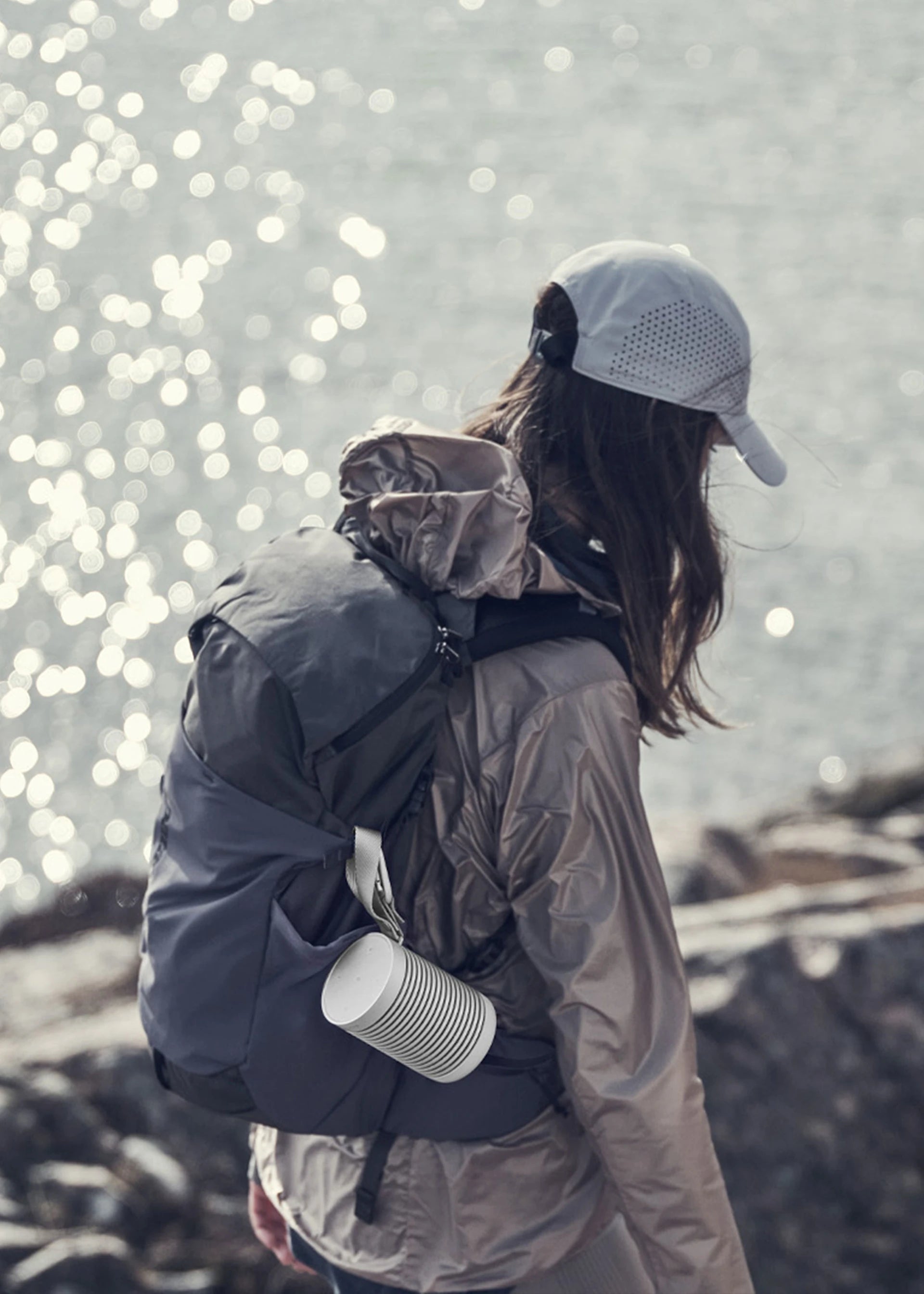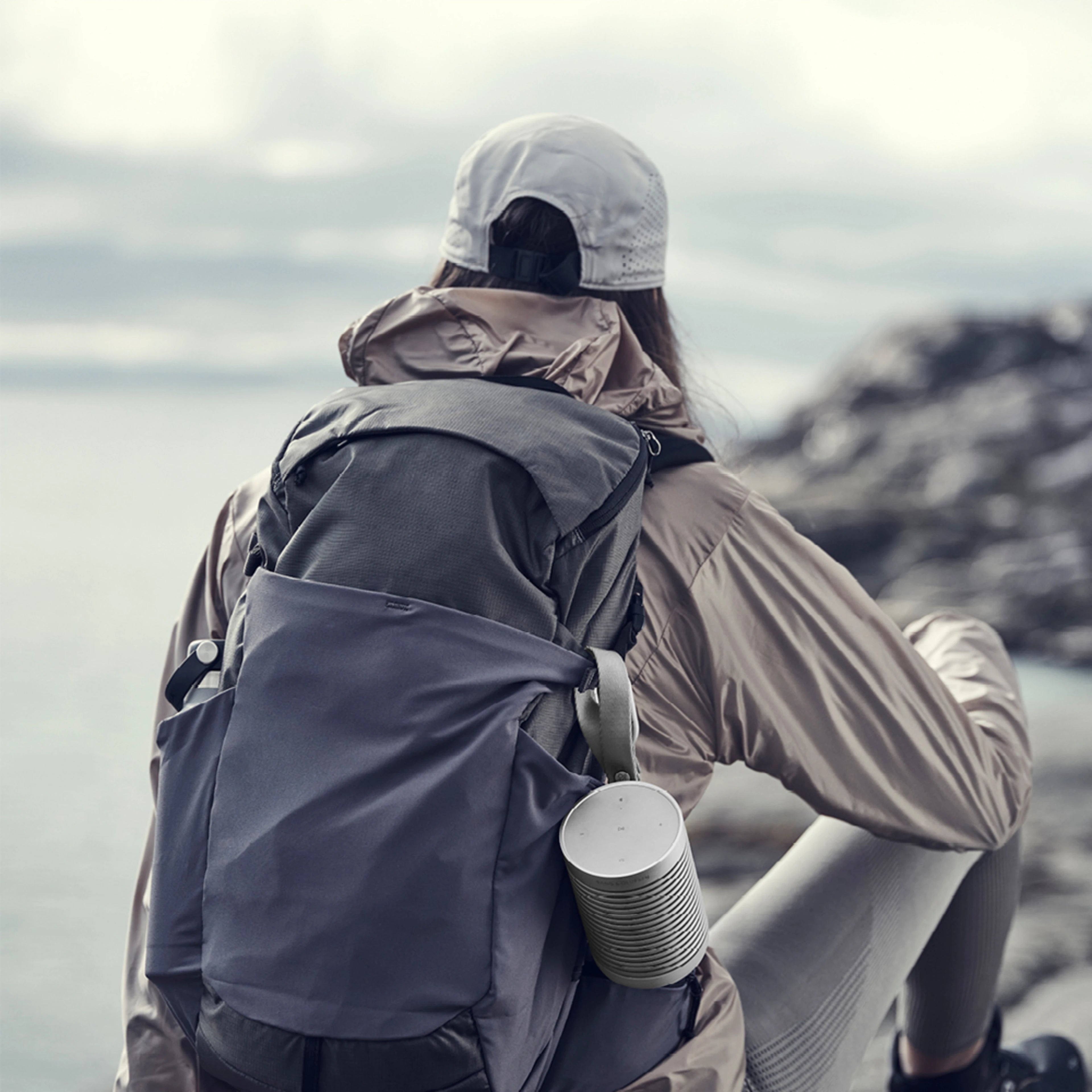 Tamamen aksiyon odaklı. Beosound Explore, tıpkı diğer pratik ekipmanlarınız gibi çalışır: Çantanıza bağlayın veya entegre karabinası ile kemerinize tutturun. Geriye sadece oynat tuşuna basmak kalır."