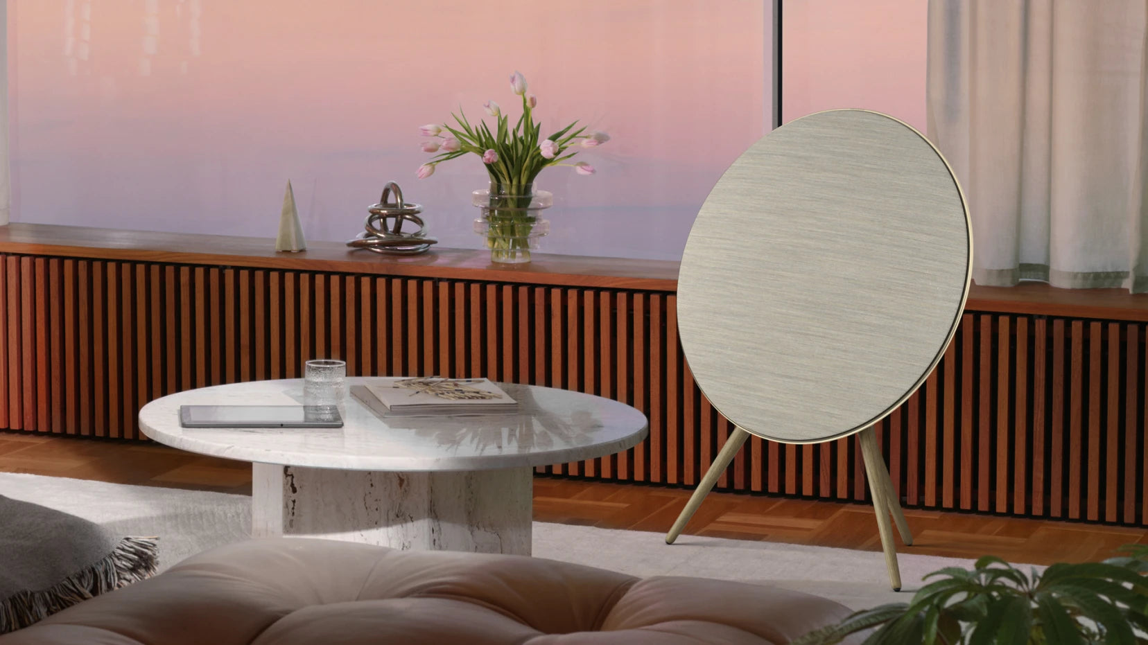 Sınırlarını aşıp evinizi dolduran Bang & Olufsen Beosound A9, ikonik tasarımı sayesinde her yerde sergilenmek üzere tasarlanmıştır.