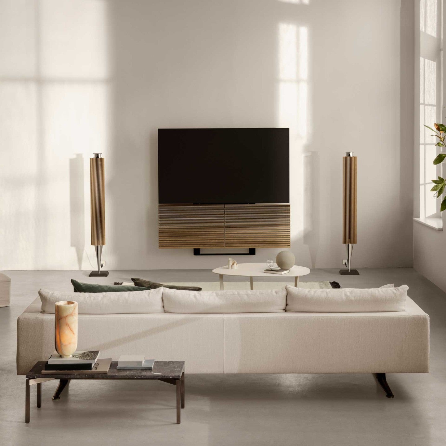 Ev sineması deneyiminiz, eklediğiniz her hoparlör seti ile yoğunlaşır. Aktif Beolab hoparlörler, bağımsız bir alıcı veya amplifikatöre ihtiyaç duymadan doğrudan Beovision TV'nize kablolu veya kablosuz olarak bağlanabilir.