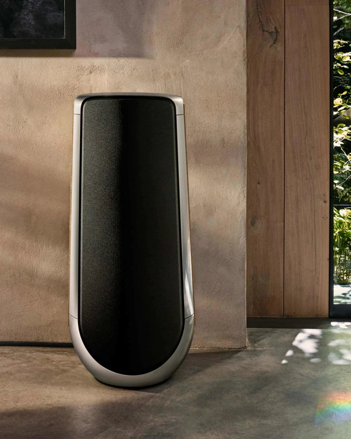 İnce, uzun silüeti ve yuvarlak tabanı ile Beolab 50, herhangi bir ev için dikkate değer ancak göze batmayan bir objedir. Alüminyum yüzeyler ve ahşap lameller, zarif ve vizyoner bir tasarımda ahenkli bir şekilde sergilenir.