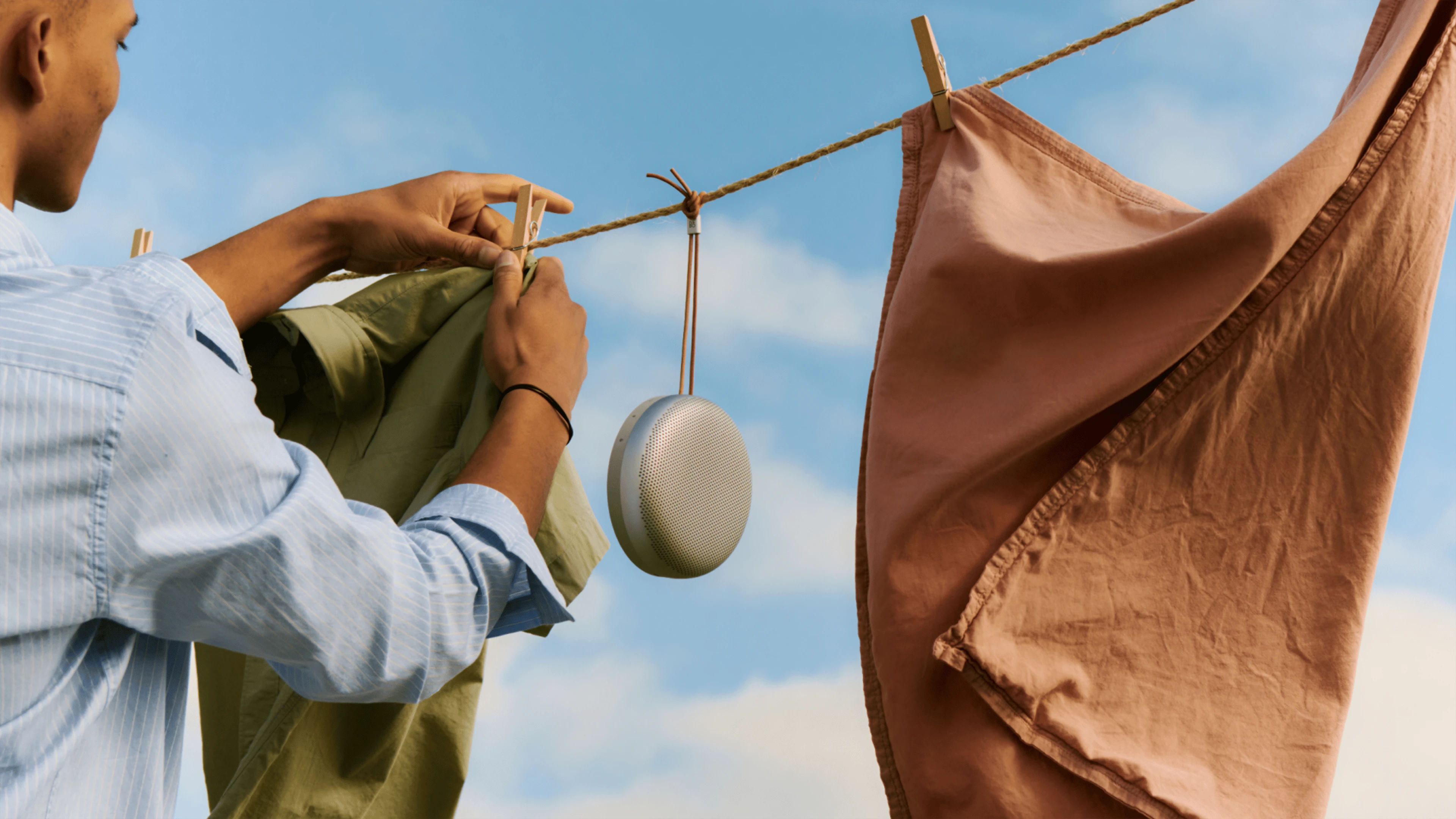 Toz geçirmez. Su geçirmez. Maceraya dayanıklı. İster su sıçramaları, ister kum fırtınası, ister sağanak… Beosound A1 çalmaya devam eder. Çünkü hayat hava koşullarına ara vermez – müzik de öyle.