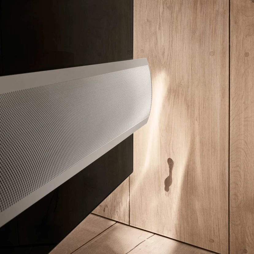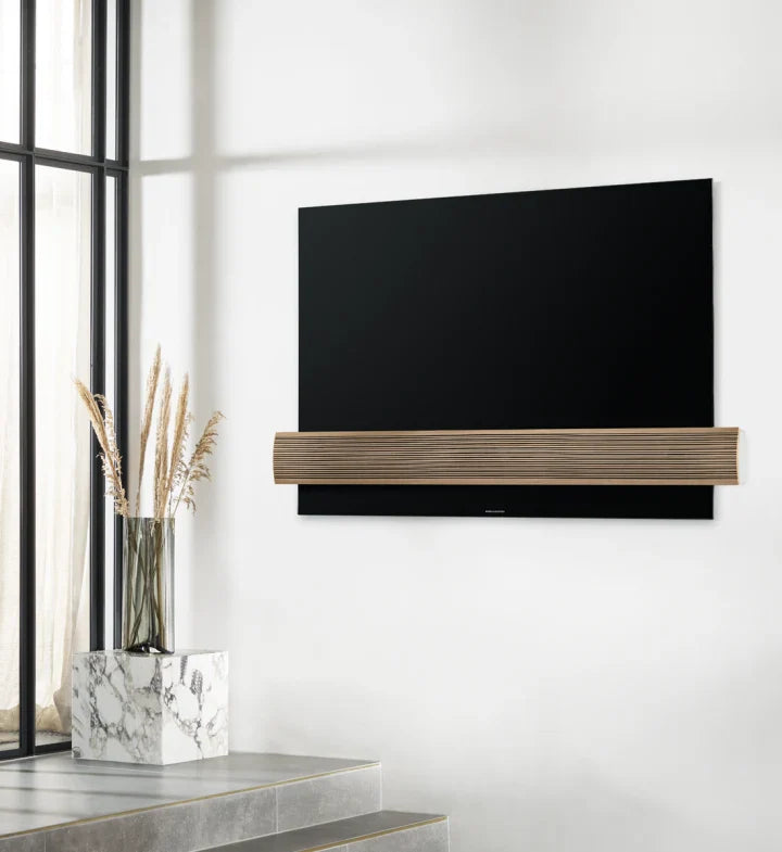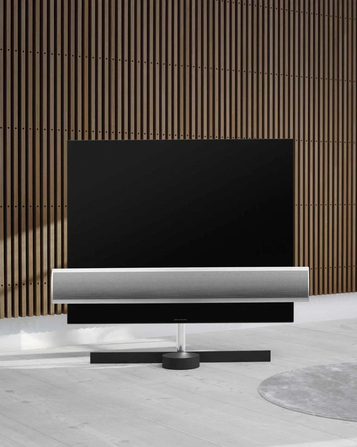 Keskin, siyah bir cam ekran, alüminyum gövdeyi doğrudan kesiyor. Beovision Eclipse, görüntü ve sesin mükemmel bir uyum içinde olduğu cesur ve net bir tasarım ifadesidir.