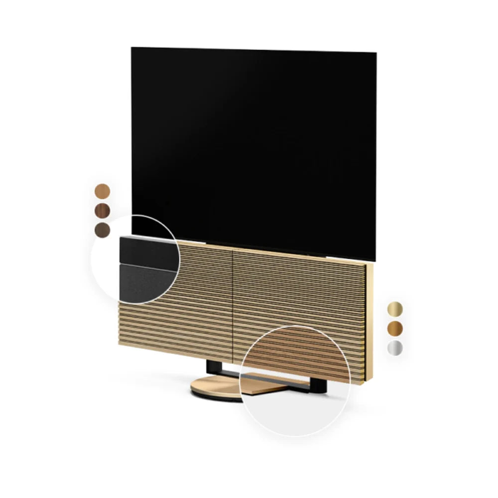 Birinci kalite ahşap, dokulu kumaşlar ve alüminyum detaylar. Hepsi ekranınızla uyum sağlamak için bir araya getirildi. Açık meşe ağacından gri melanj rengine kadar, en beğendiğiniz kombinasyonu seçin ve hoparlörlerinizin büyüleyici sesi ortaya çıkarmasına izin verin.