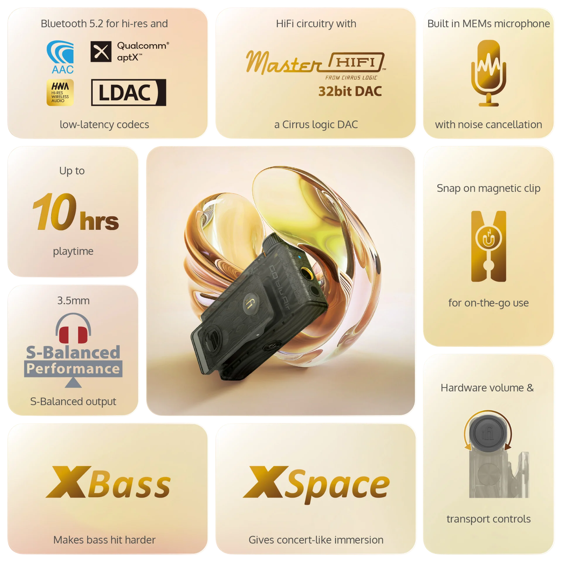 Çoğu Bluetooth ürünü, alım, dijitalden analoga dönüştürme ve yükseltme gibi kritik görevler için tek bir yonga setine güvenirken, GO blu Air, tam boyutlu hi-fi sistemlerinin aşama aşama tasarımından ilham alarak bunları ayırır. Qualcomm QCC5144 yonga seti yalnızca Bluetooth alımı için kullanılır, bu görevi en iyi şekilde yerine getirir. Buradan ses, doğal tonlaması, düşük güç tüketimi ve yüksek çözünürlüklü çıkışı için özel olarak seçilmiş bir Hi-Res Cirrus Logic MasterHIFI DAC'ye iletilir.