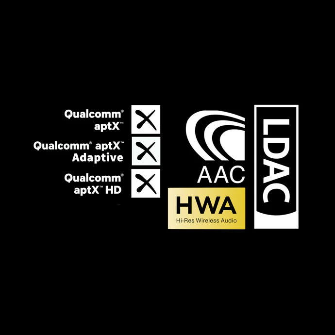LDAC, LHDC/HWA, aptX Adaptive, aptX HD, aptX, AAC, SBC