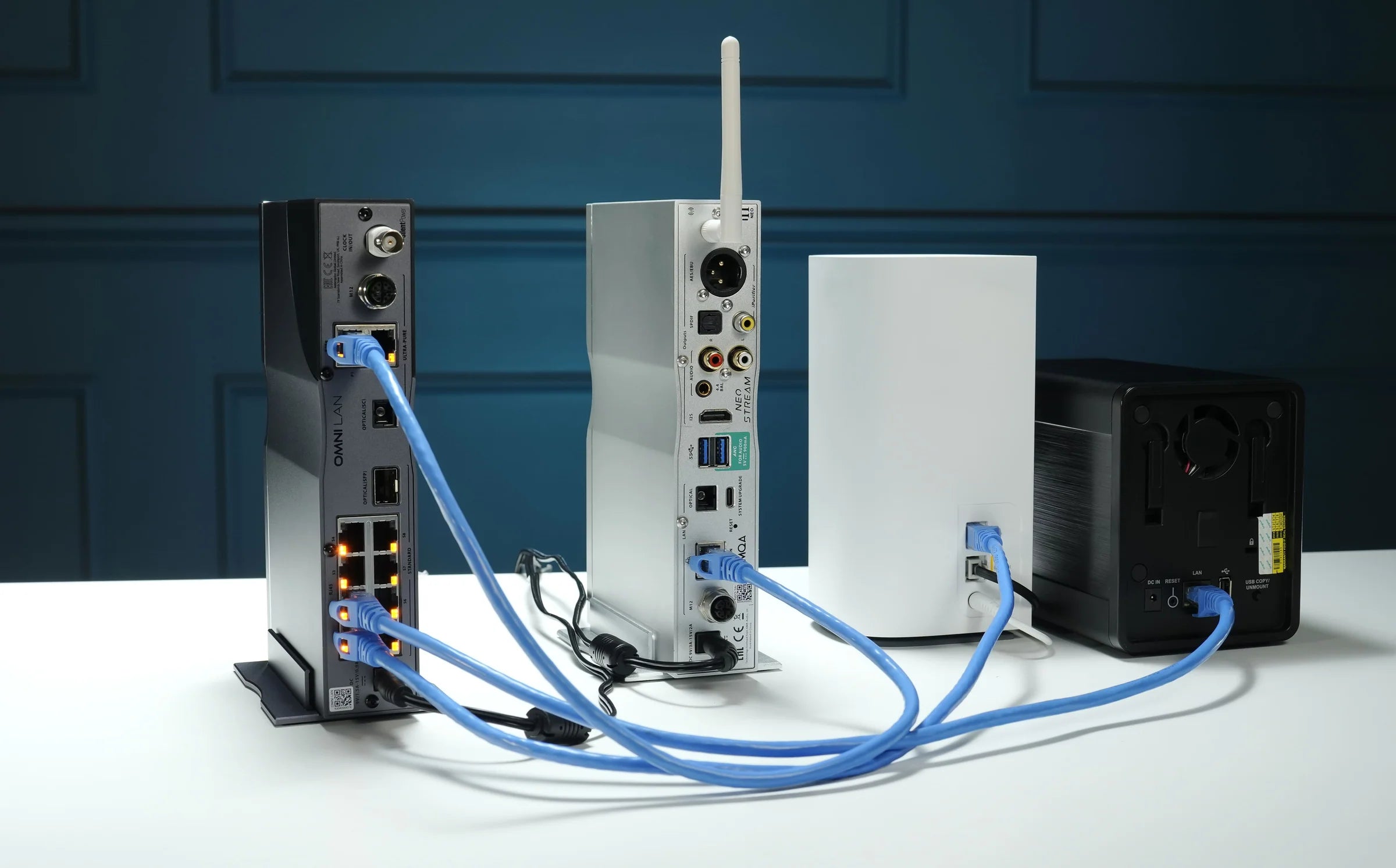 Yüksek çözünürlüklü dosyaları yayınlarken, Roon çekirdeği kullanırken veya ağ üzerinden müzik sunucusu çalıştırırken, OMNI LAN yönlendiriciden oynatıcıya kadar kusursuz sinyal sağlar.