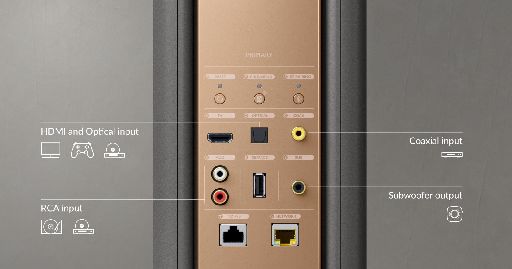 LS60 Wireless, ister plak çalarınızda plak dinlemeyi seviyor olun, ister CD çalarınızdan veya oyun konsolunuzdan mümkün olan en iyi sesi almak istiyor olun, tüm kablolu kaynaklarınızı destekler. Ayrıca, TV'nizle yüksek kaliteli bağlantı için bir HDMI (eARC) desteği ve bir veya iki KEF Subwoofer'ın eklenmesi için hoparlörlerin her birinde özel bir çıkış sunar.