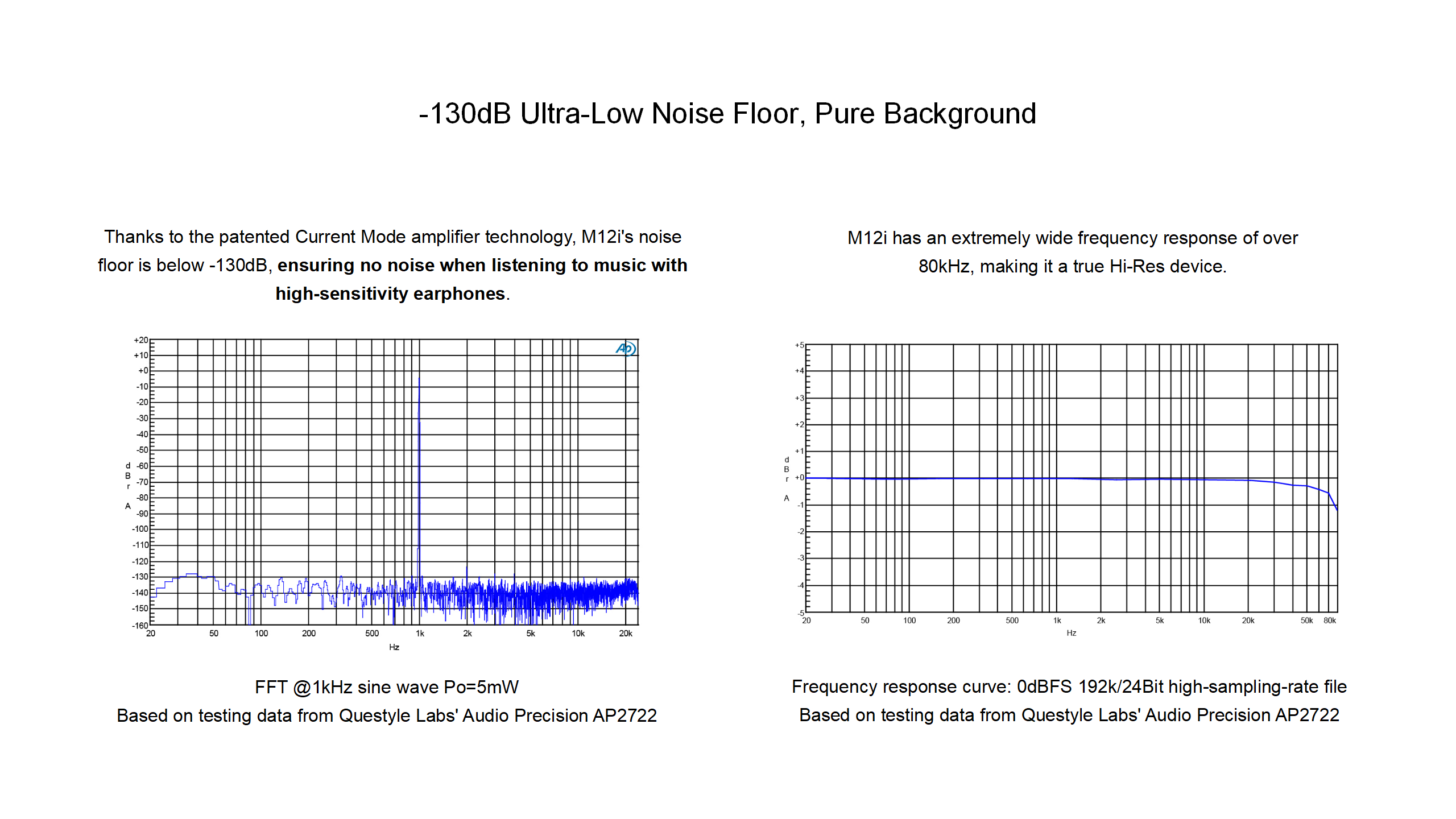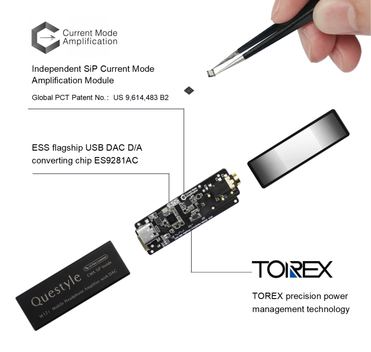 Amplifikasyon işlemi için standart operasyonel amplifikatör (op-amp) çipleri kullanan benzer ürünlerin aksine; M12i, Questyle'ın bağımsız olarak geliştirdiği Akım Modu amplifikasyon modülü sayesinde op-amp çiplerinin güç sınırlamalarına takılmaz. %0.0003 gibi ultra düşük bir distorsiyon oranına ve son derece yüksek akım çıkış kapasitesine sahiptir.