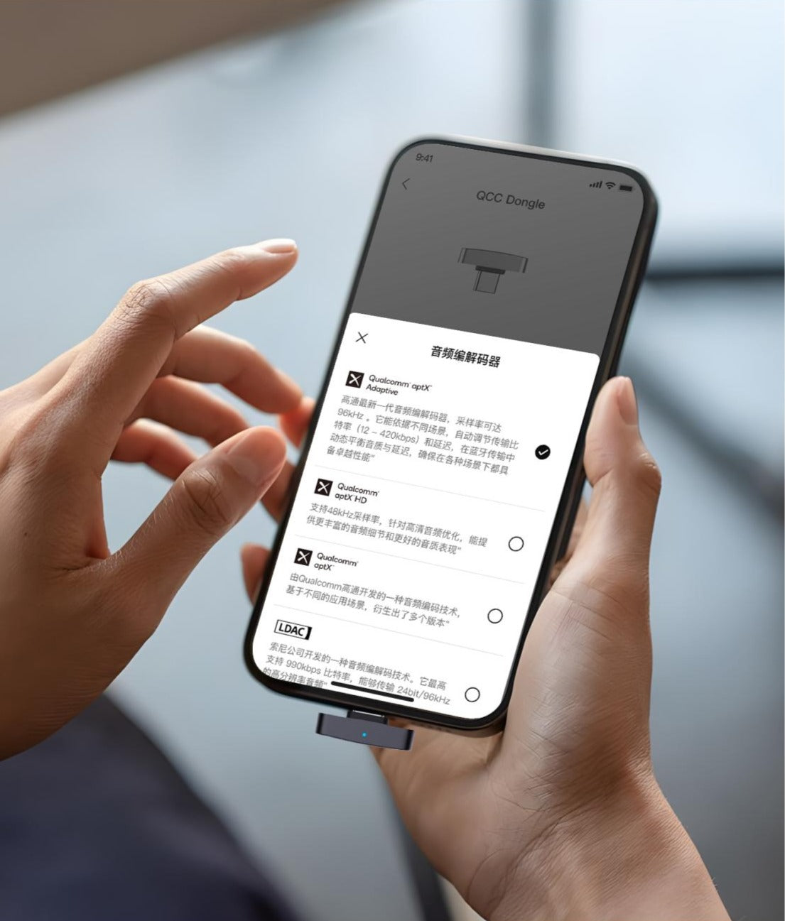 QCC Dongle ve QCC Dongle Pro kayıpsız (lossless) Bluetooth vericileri, Qualcomm'un en yeni nesil Snapdragon Sound™ teknolojisi ile donatılmıştır.