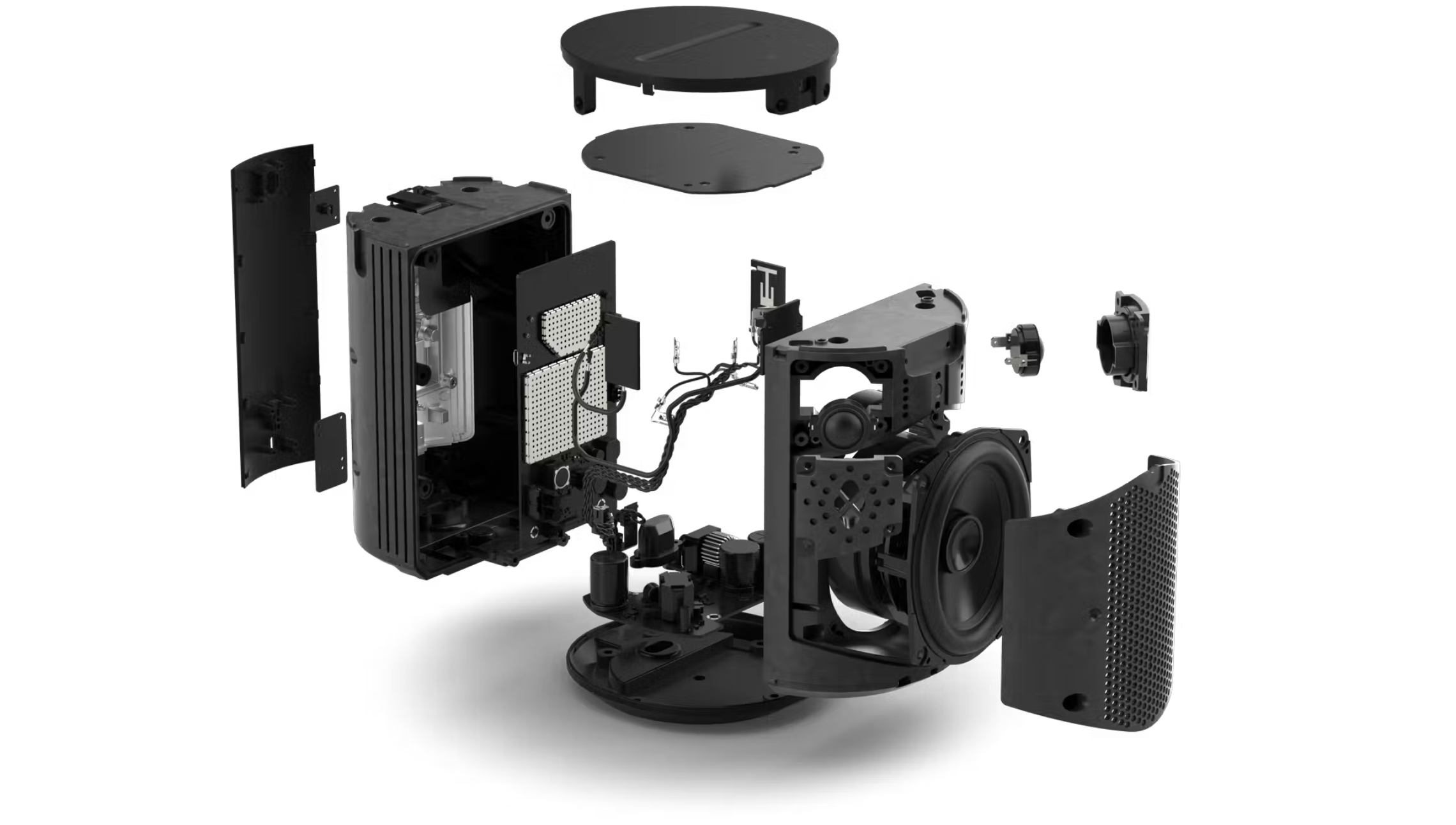 Hoparlörün benzersiz akustik mimarisine göre hassas bir şekilde ayarlanmış üç adet D Sınıfı dijital amplifikatör, ses deneyiminizi güçlendirir.