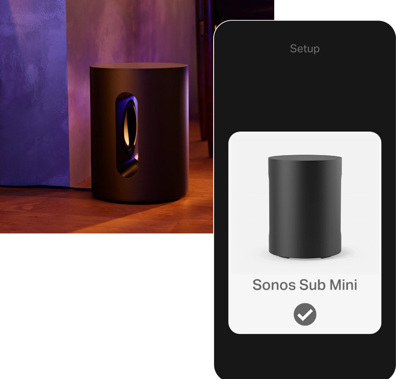 Tek bir kablo ve uygulama yönlendirmeli kurulumla Sub Mini, daha dolgun ve daha ayrıntılı sesin keyfini çıkarmanızı kolaylaştırır.