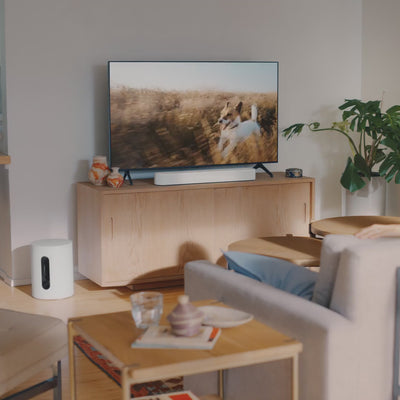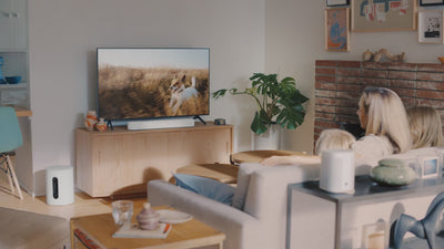 Sub Mini'yi Beam veya Ray ile eşleştirerek eğlence deneyiminizi açığa çıkarın. 5 GHz WiFi bağlantısı, ses iletim hızını artırarak filmlerin, dizilerin ve oyunların keyfini TV'nizle güvenilir bir şekilde senkronize edilmiş yüksek kaliteli sesle çıkarmanızı sağlar.